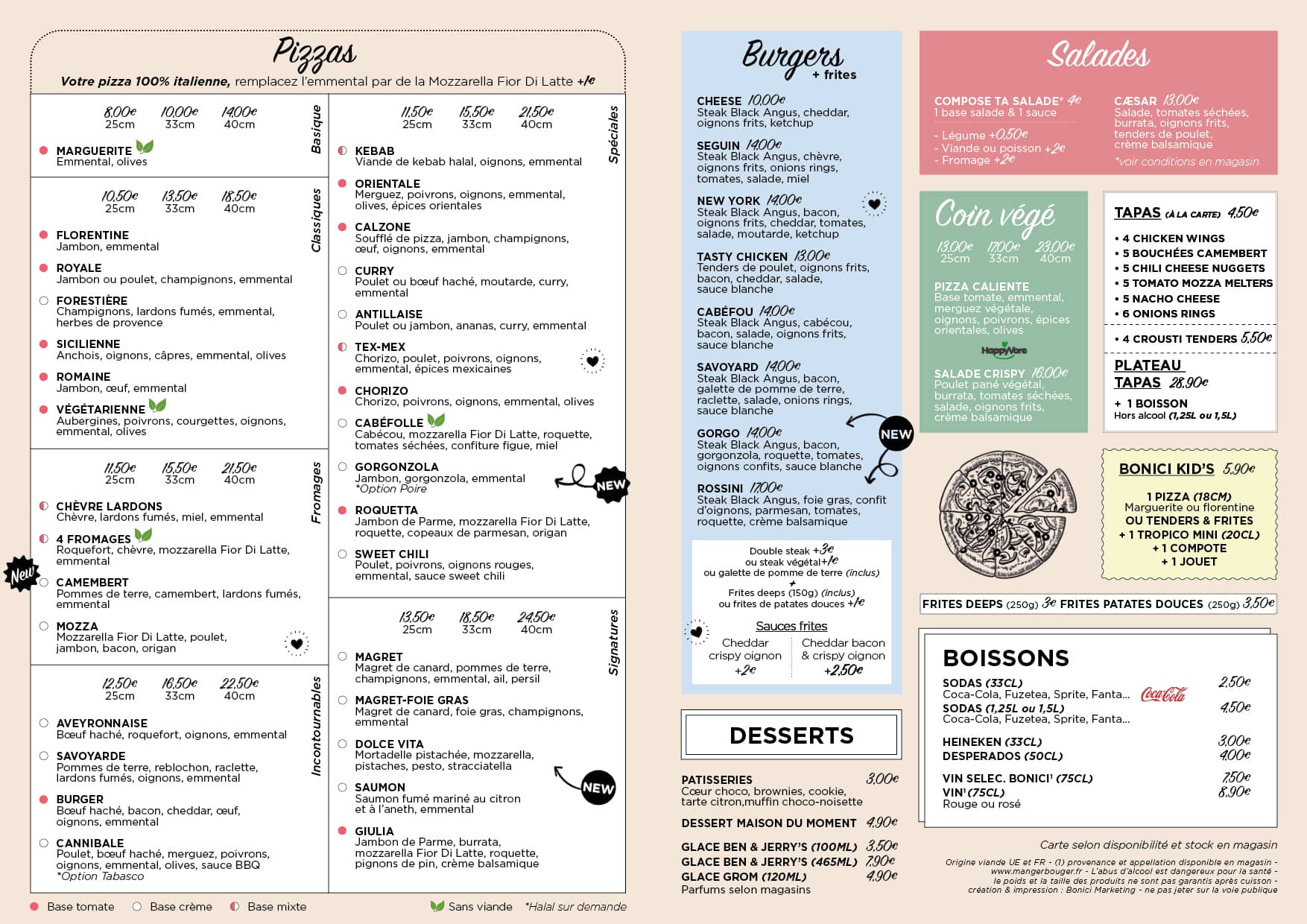 Vous pouvez également choisir de commander un de nos burgers entièrement faits maison ou une de nos salades complètes et savoureuses à moins que vous ne préfériez les tapas à partager pour votre repas entre amis ou en famille. Chez Pizza Bonici (lien), vous trouverez forcément un plat qui vous correspond et qui saura ravir votre palais !