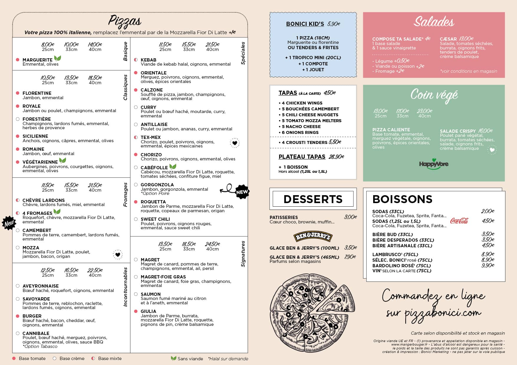Rapidement chez vous ou où vous le souhaitez, Pizza Bonici vous amène des plats aux ingrédients de qualité, directement à votre table.