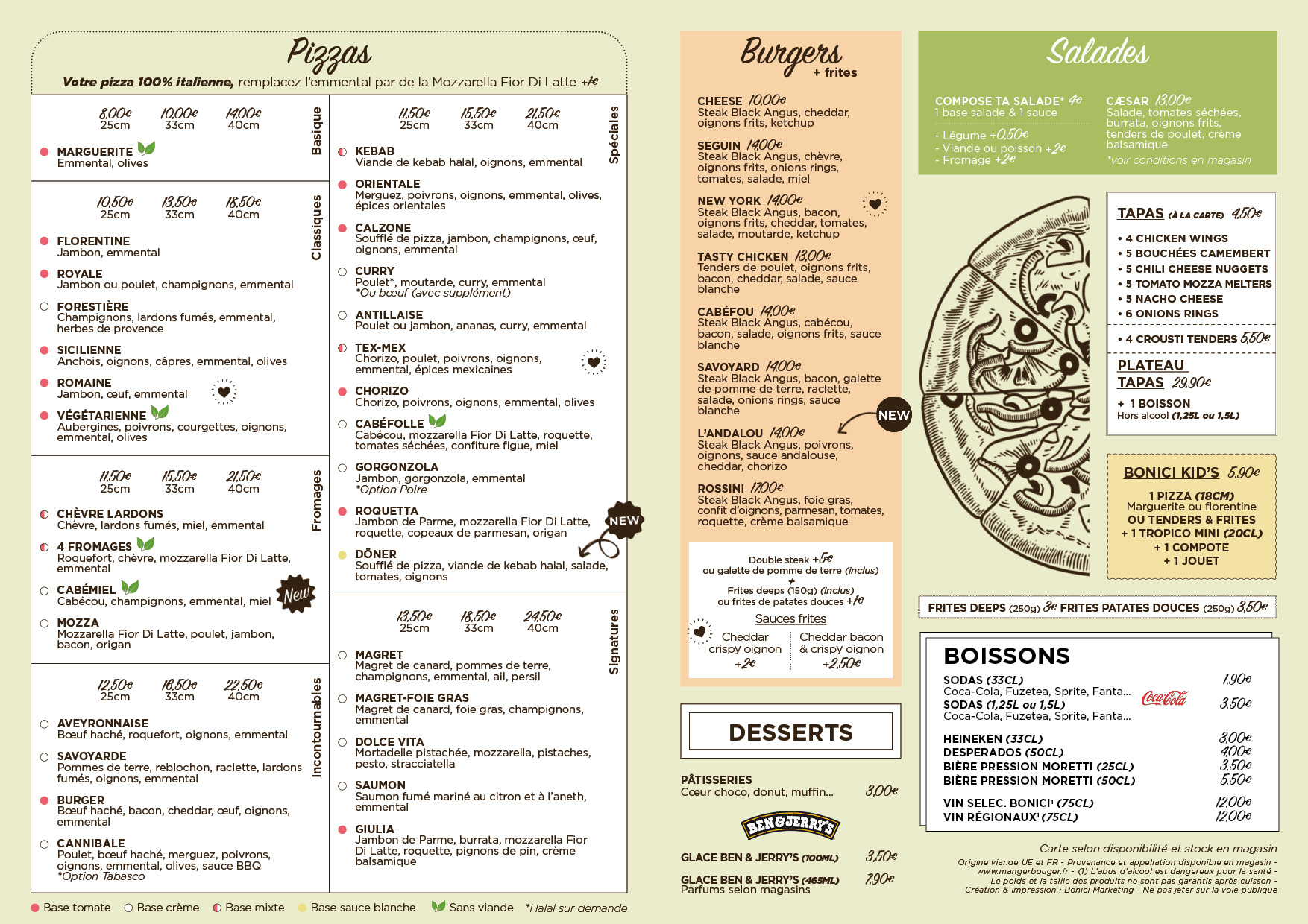Plateau tapas (selon magasin)29,90 €Plateau tapas (selon magasin) 5 tomato mozza melters, 5 nacho cheese triangle, 5 chili cheese nuggets, 4 chicken wings, 6 onion rings, 4 crousti tenders, 1 boisson (1.5L ou 1.25L) au choix selon magasin