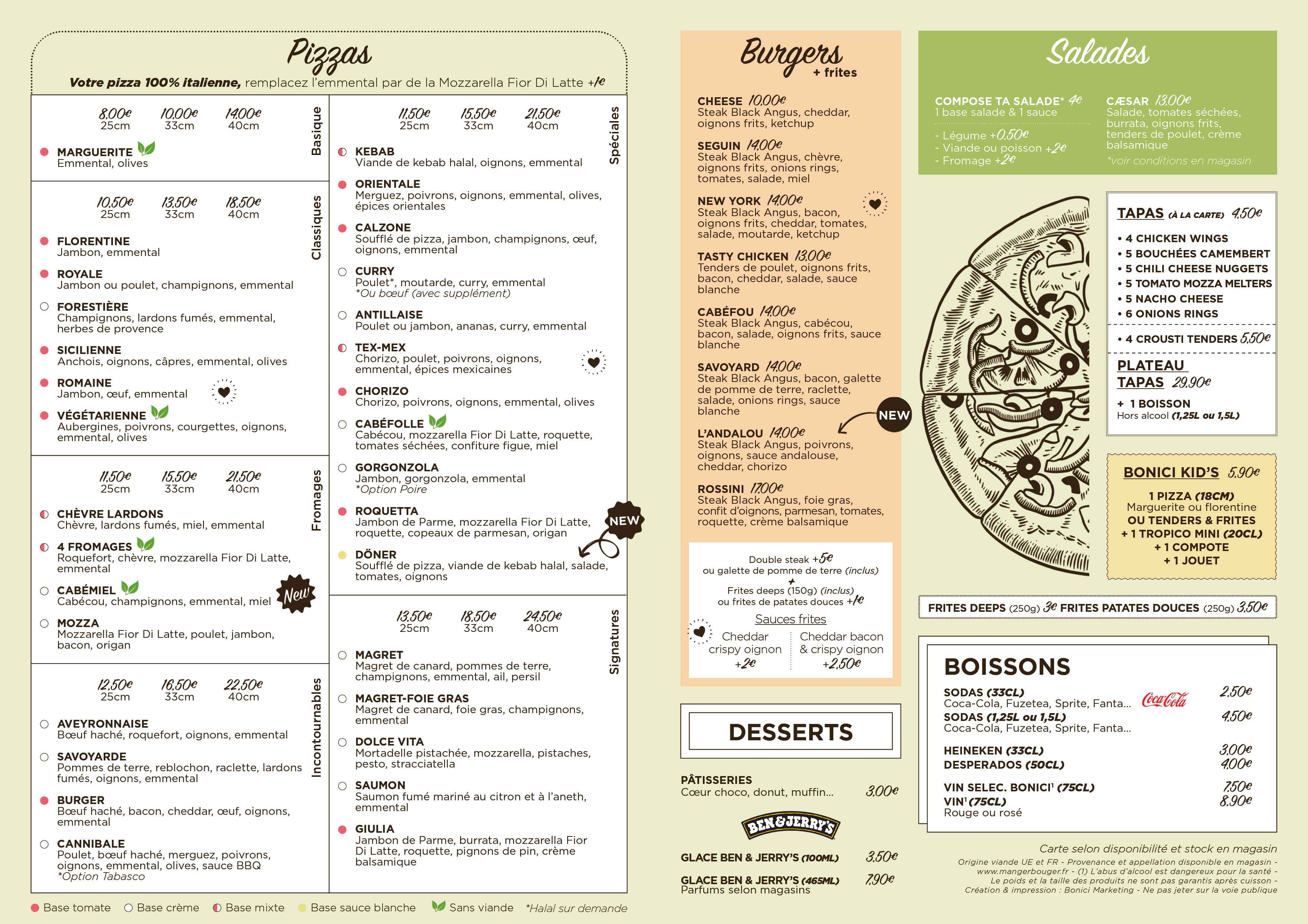 Pizza Bonici met également à votre disposition des salades et des desserts pour les plus gourmands !