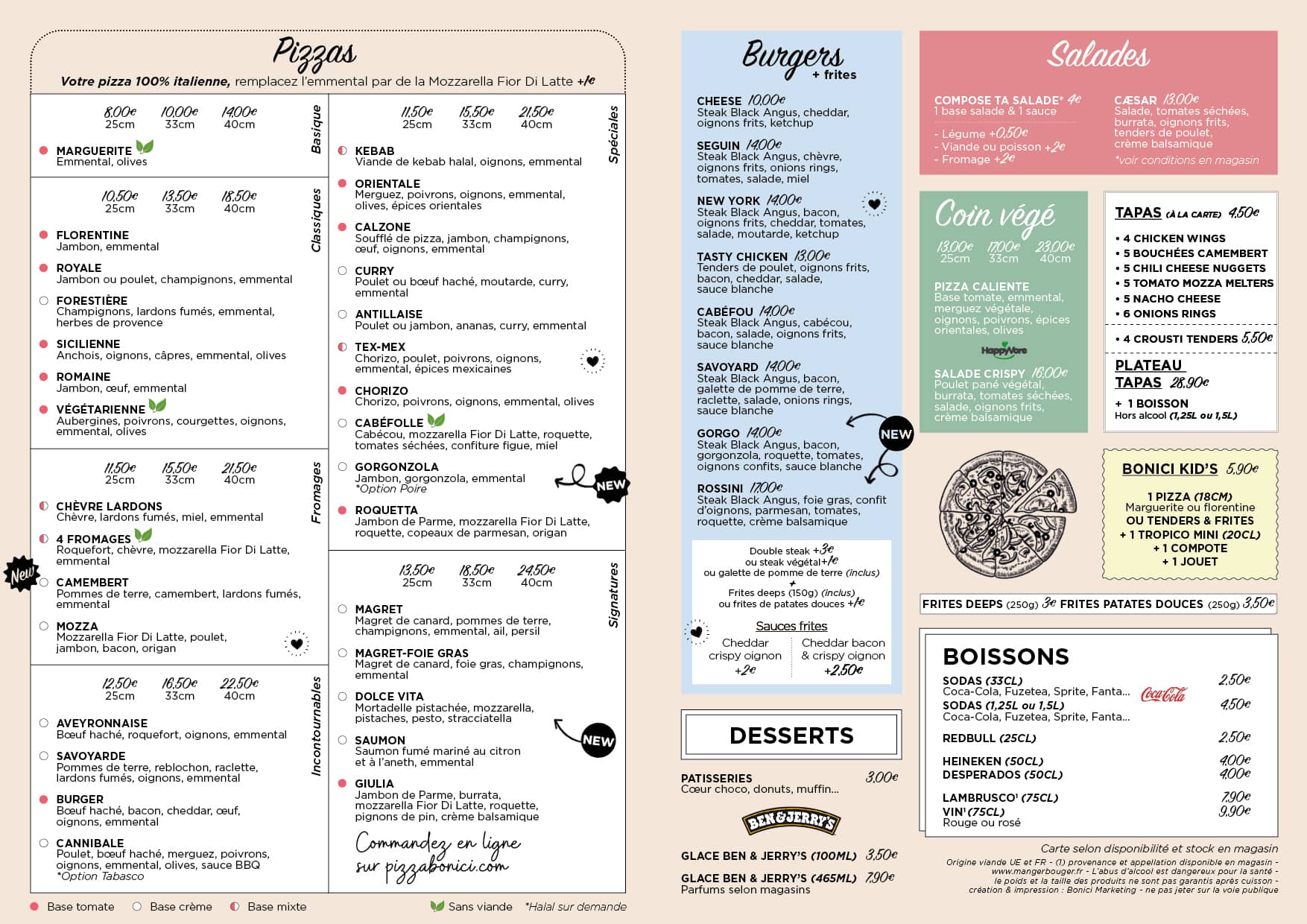 Chez Pizza Bonici, vous avez le choix. Commandez sur place ou en ligne le plat qui vous plaît, choisissez le lieu où vous souhaitez le déguster et notre équipe talentueuse mettra tout en œuvre en cuisine, afin que vous vous régaliez !