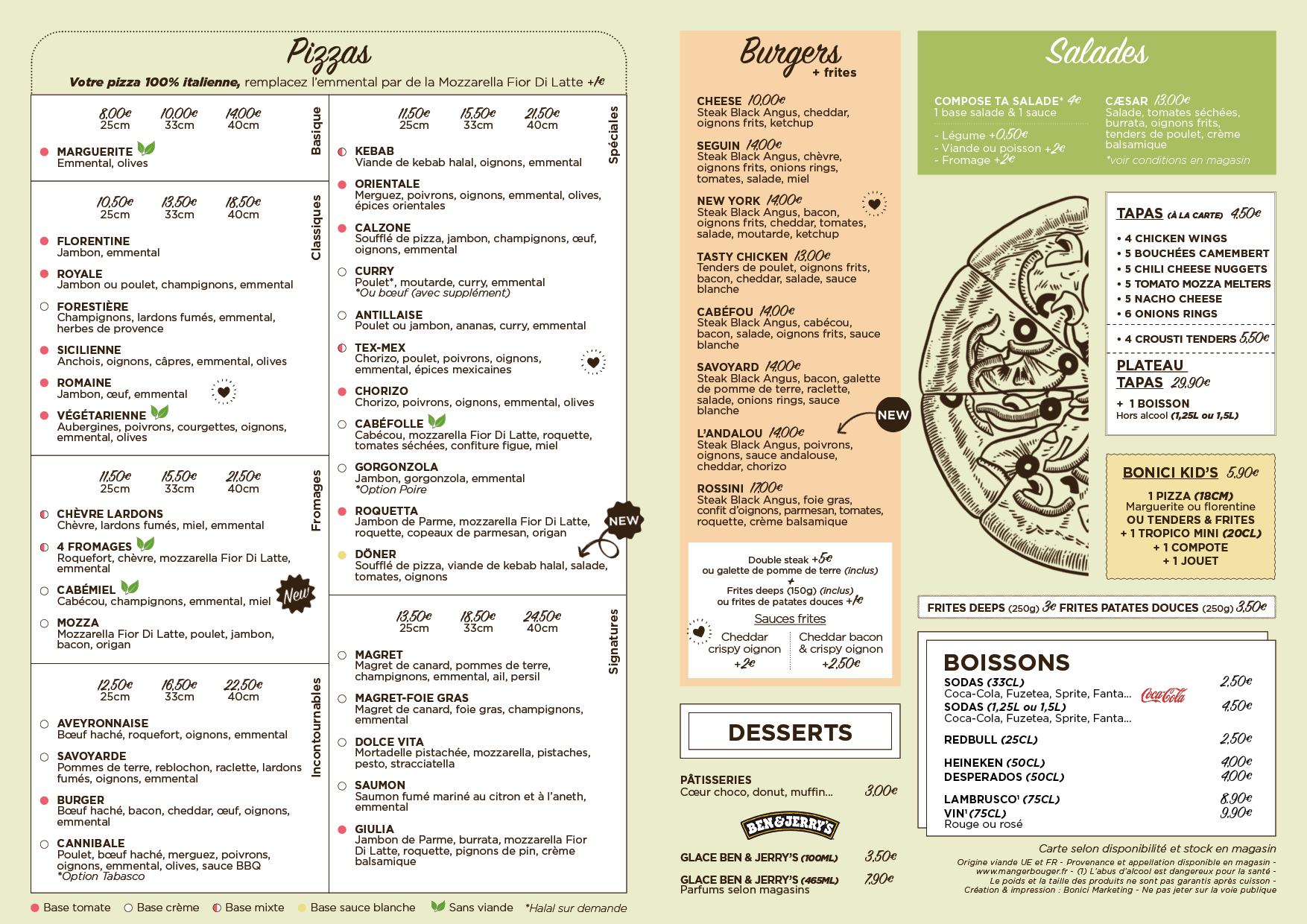 Chez Pizza Bonici, nous vous proposons des plats préparés avec des ingrédients sélectionnés avec soin pour leur qualité, leur goût et leur origine :
